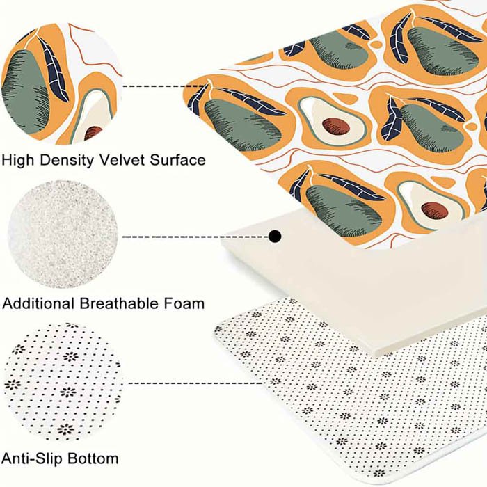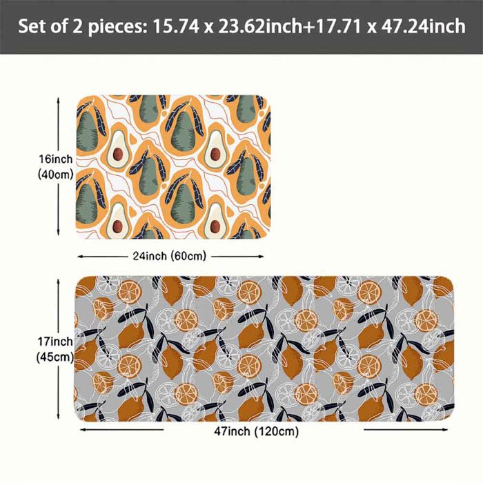 Customization: Provide high-res designs suitable for kitchen mat sizes. Size error within 2cm is normal due to different measurement methods . Package: 2-piece set, outer carton packaging with inner PE wrapping film for protection. Care: Wipe clean with a damp cloth; hand washable (gentle cycle) with cold water if needed; air dry; avoid bleaching or high-temperature drying to maintain material quality and color vibrancy. Reminder: Minor color/size differences may occur (normal, not covered by after-sales). Images are for reference; final product prevails.
